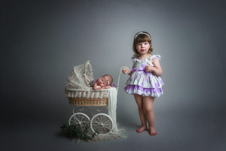 A professional photography studio is equipped with all the necessary items to capture high-quality images of your newborn. From the camera, lighting, and backdrops to props and accessories, everything is designed specifically for newborn photography. These props are clean, safe, and sanitized, ensuring your newborn’s health and safety. To utilize this setting to the fullest it does require a large space to do so.